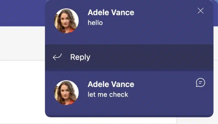 The strategic use of banner notifications significantly improves workflow efficiency within Microsoft Teams. By prioritizing urgent information and minimizing interruptions, they help users stay focused and productive. For example, imagine a project manager receiving a banner notification about a critical deadline approaching; this timely alert allows for immediate action, preventing potential delays. Similarly, a team member receiving a direct message notification about a needed file can promptly provide the necessary resource, preventing project bottlenecks. The immediacy and focused nature of banner notifications contribute to a more streamlined and efficient work environment. The system avoids overwhelming users with continuous pop-ups by prioritizing messages based on relevance and urgency, leading to better overall productivity.